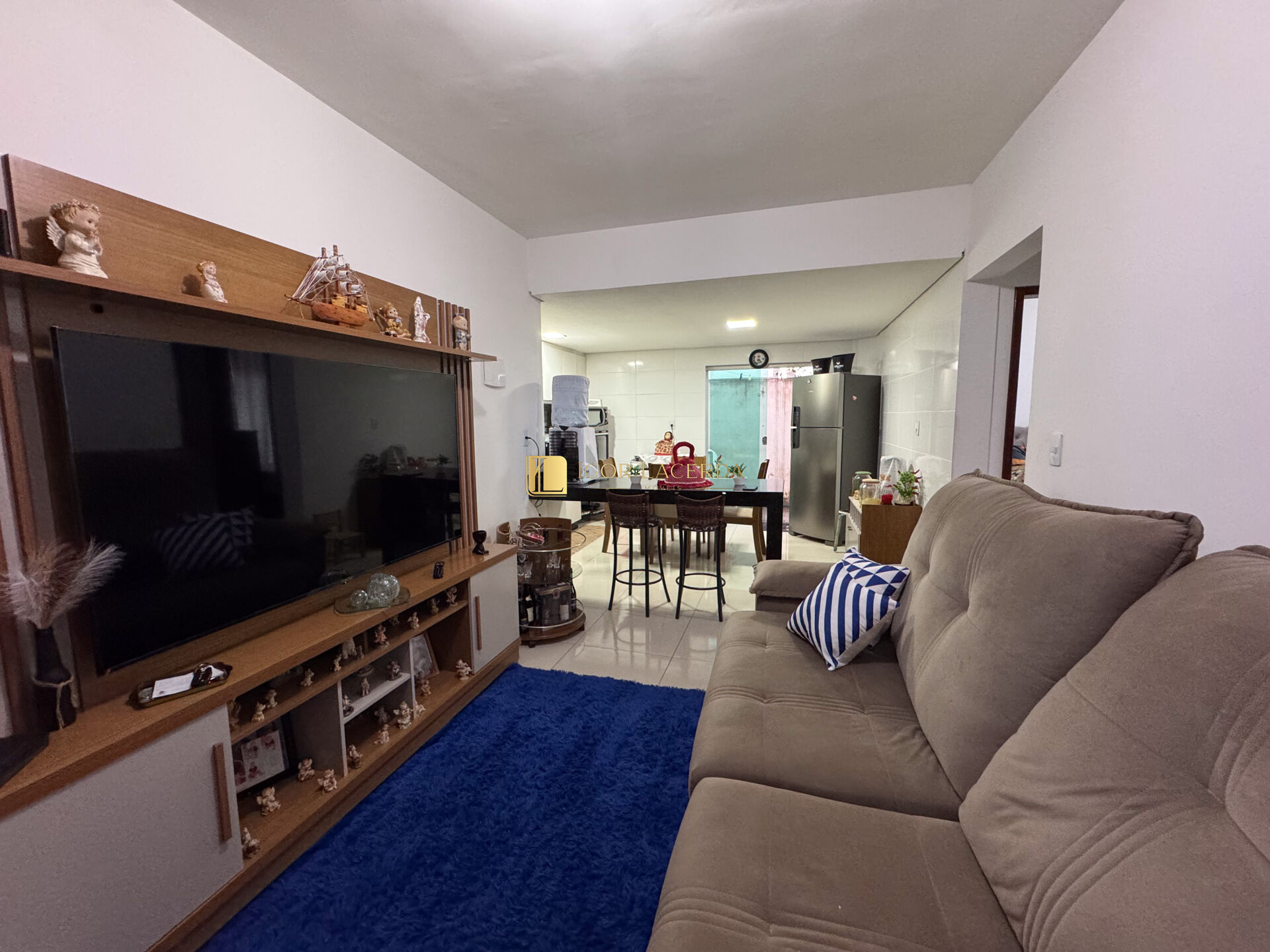 Sala de TV e jantar integradas