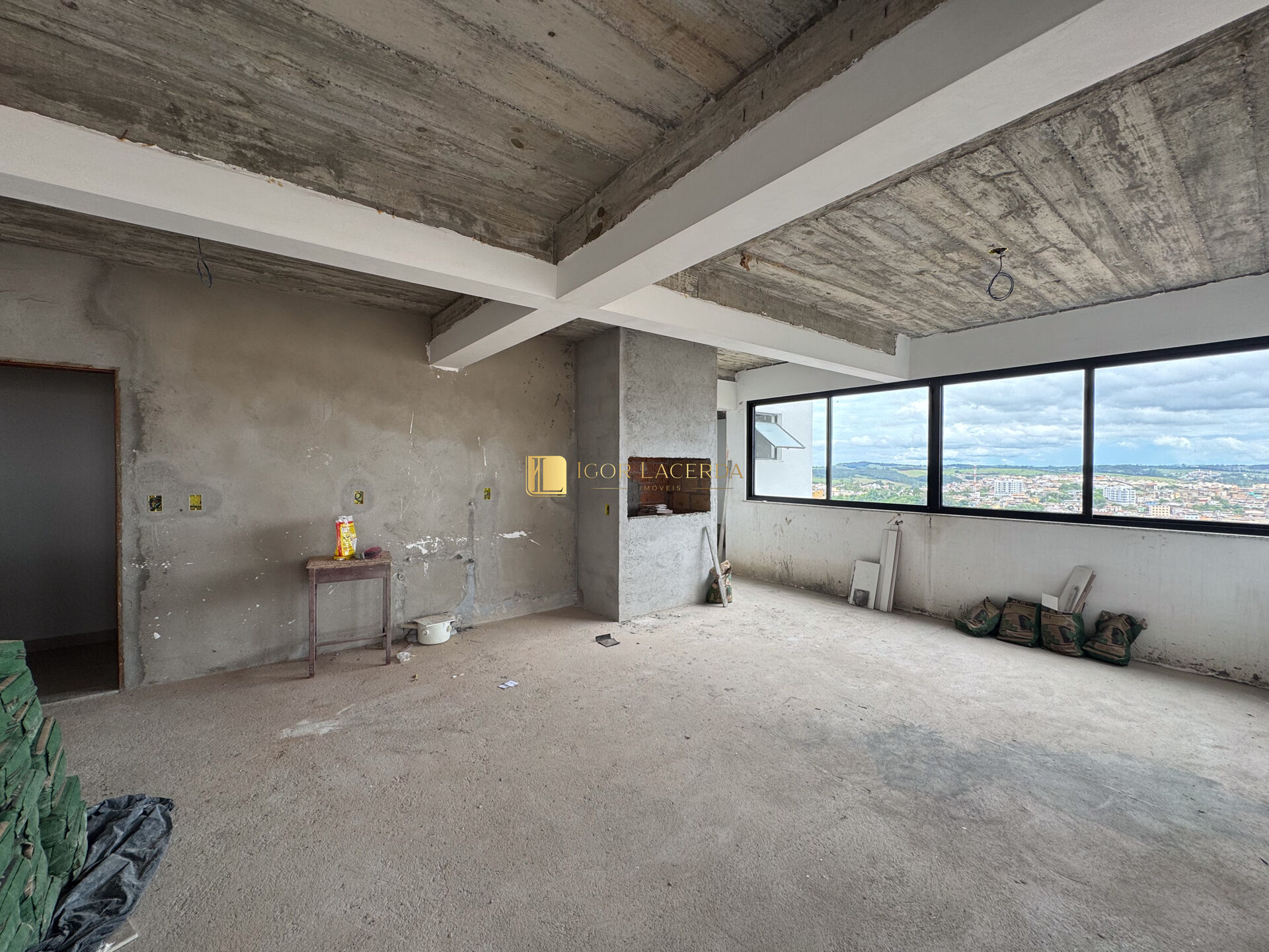 Cobertura com churrasqueira, sala e banho social;